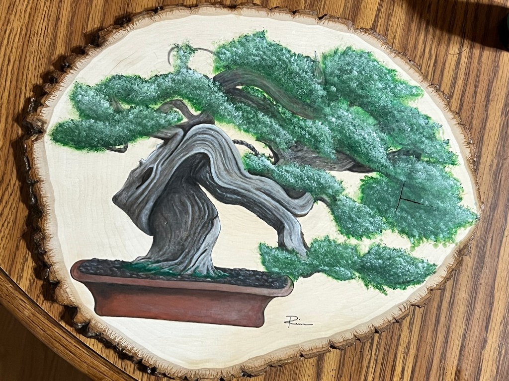 Banzai on large wood slice
